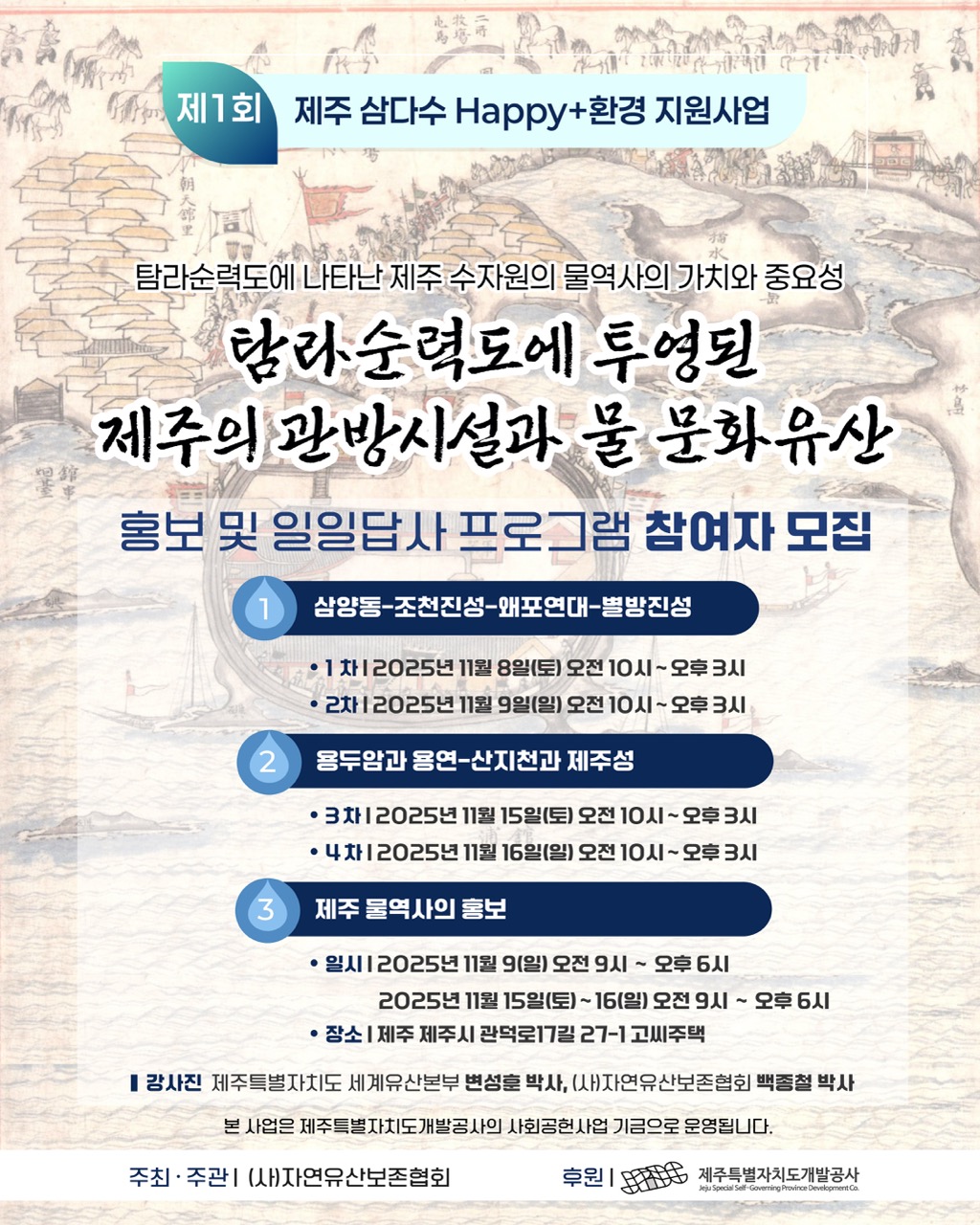, 제주 하면 가장 먼저 떠오르는 것 중 하나가 '삼다수'잖아. 제주 대표 문화유산인 탐라순력도에 물과 연관된 곳들이 그려져 있는데, 그곳들을 방문해 볼 예정이야. 같이 갈래? 🙌